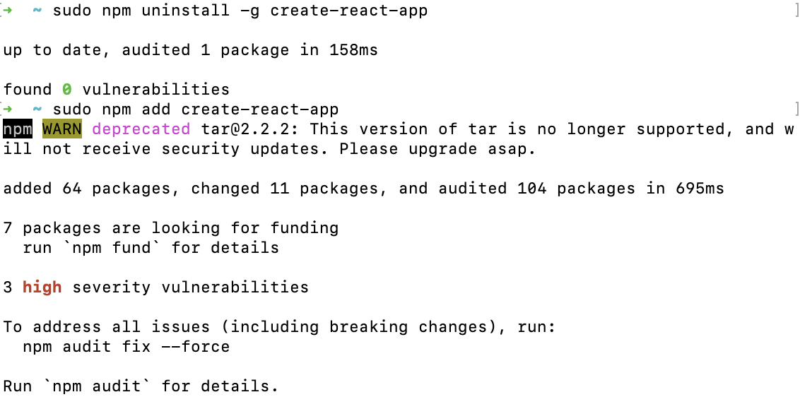 터미널에 작성한 후 지정 폴더에서 npx create-react-app (app이름) 다시 시도