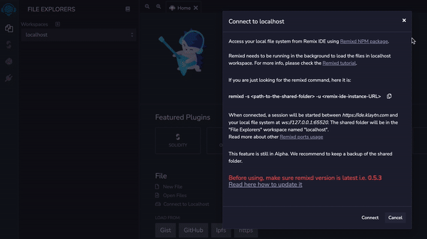 3. klaytn IDE로 접속 그리고 localhost연결하기(gif참조)