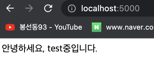 아래와 같은 모습이 보이고 있다면 port5000번에서 우리는 서버를 구동중이다.