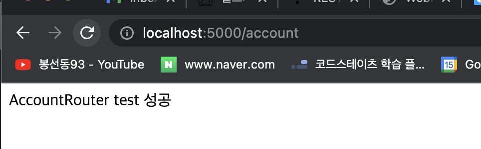 node app.js를 통해서 server를 구동한 다음 http://localhost:5000/account 로 접속시 다음과 같은 사진이 보인다면