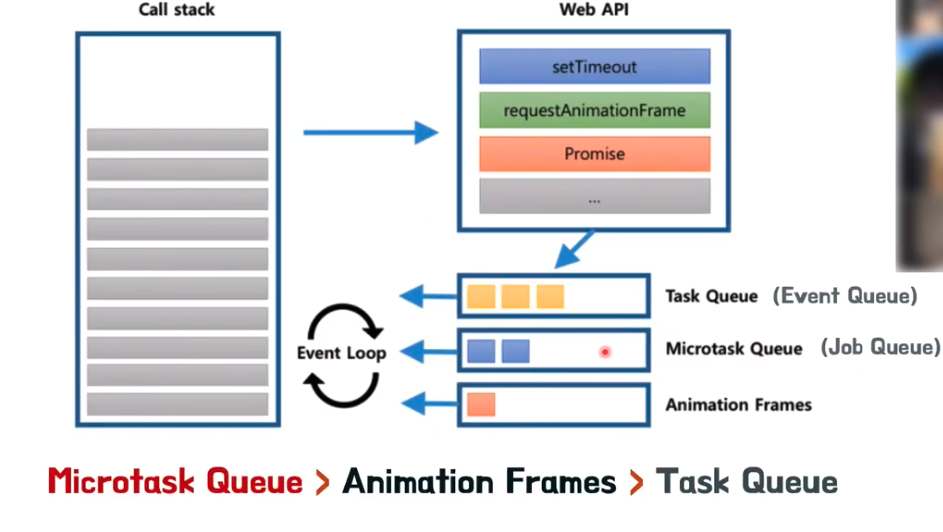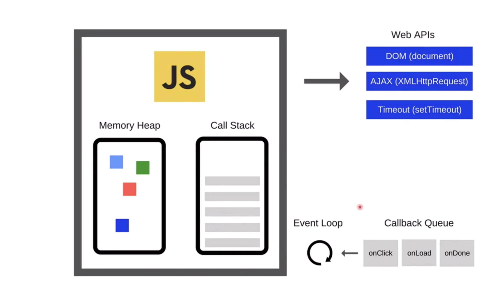 Web APIs (node에서는 백그라운드로 설명된다.) => 비동기처리를 담당한다.