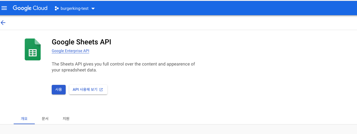 위 사진과 같이 검색창에 sheet api라고 검색하고 들어가 보자.